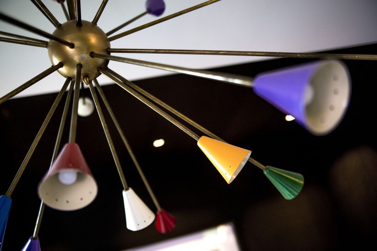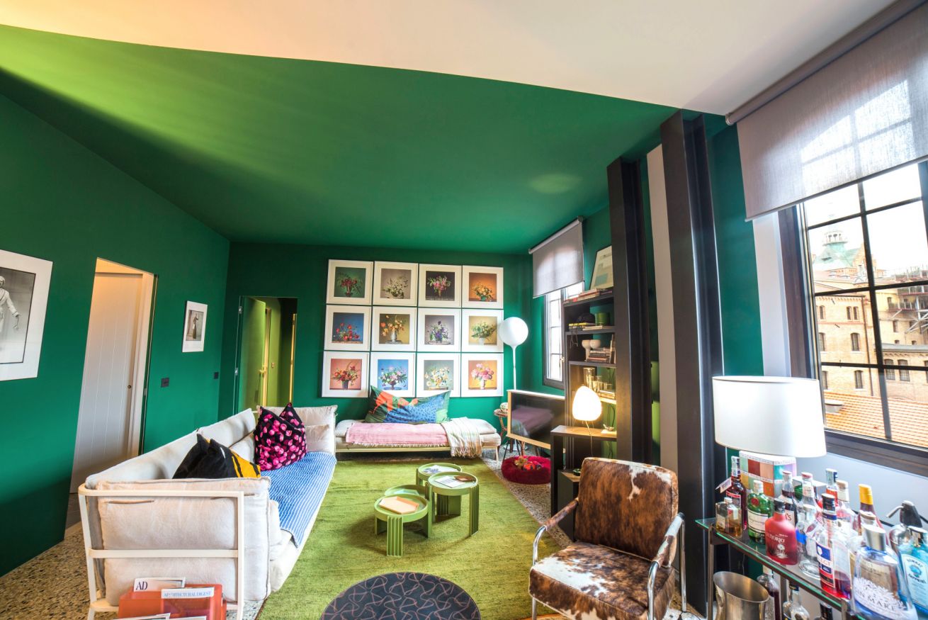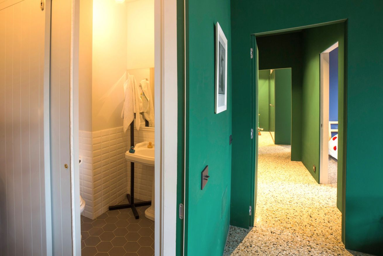 Situato nell'imponente complesso dell'ex molino Stucky, Ca' dei Colori è uno straordinario appartamento in cui tutto è colore e design, dal banco cucina minimalista in acciaio inox realizzato su misura, al bellissimo tavolo in rovere e vetro disegnato da Carlo Mollino, sovrastato dal lampadario Sputnik anni '50, alle 12 pagine incorniciate del rarissimo calendario che Steven Meisel ha realizzato per Loewe, attraverso una serie di oggetti e mobili che lo rendono unico ed irrinunciabile.