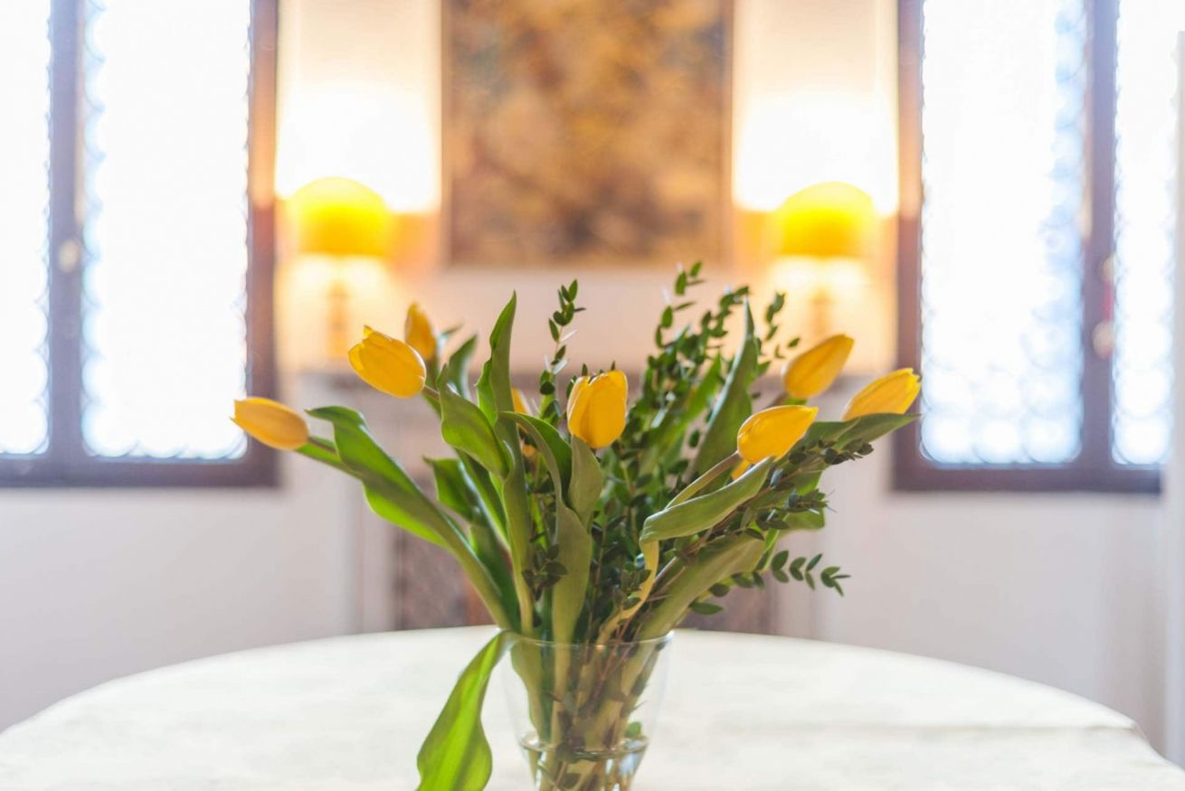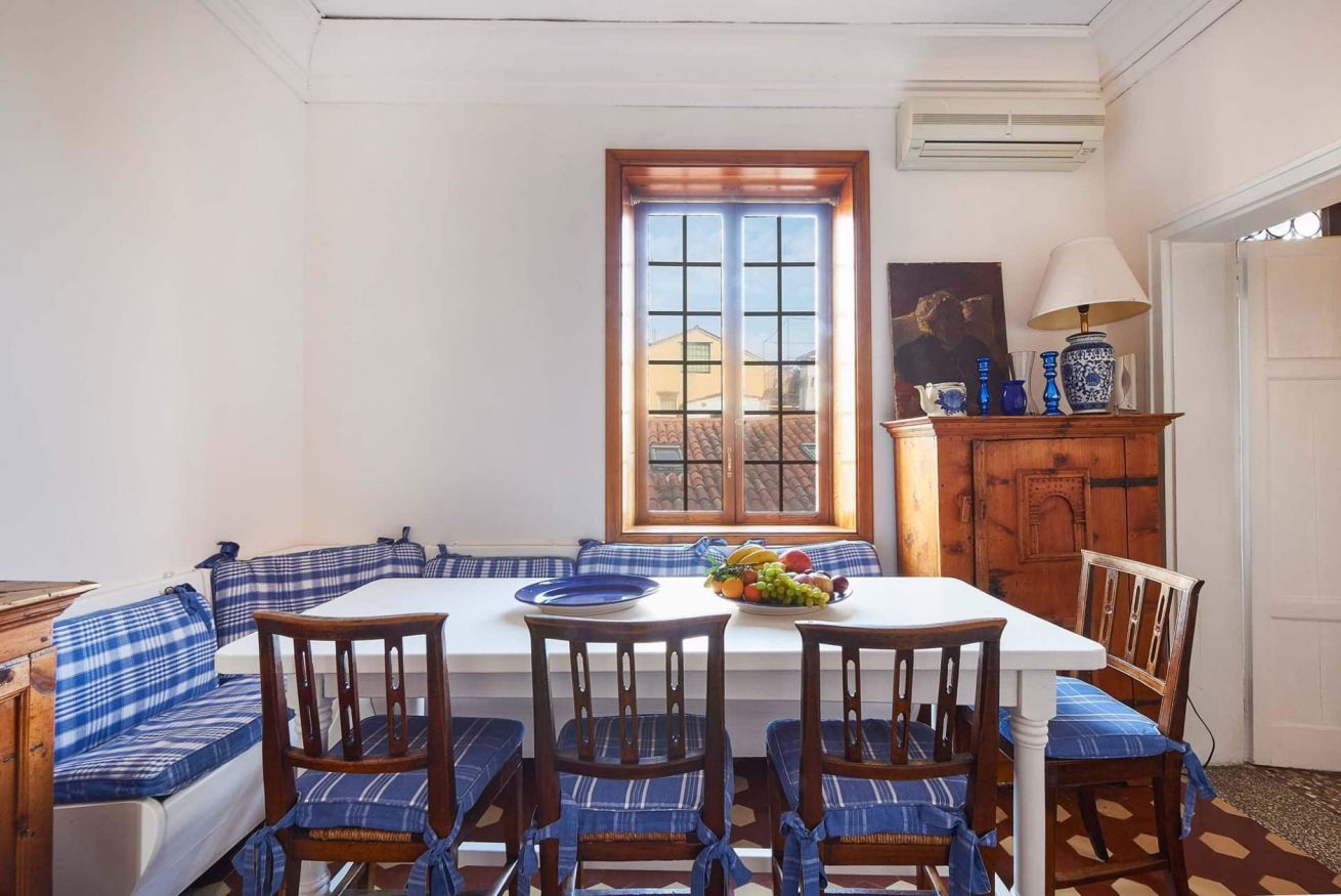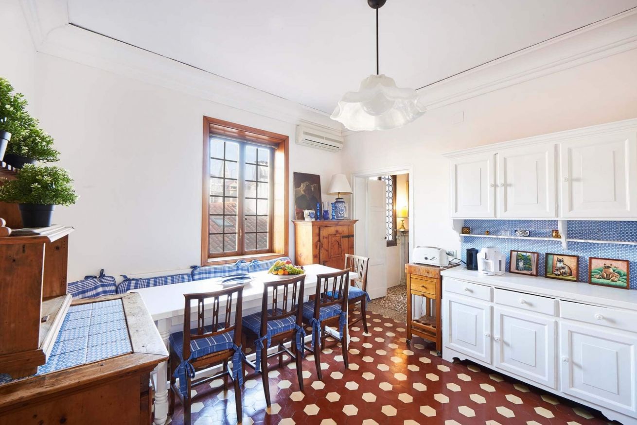 Affascinante casa di famiglia finemente arredata e decorata, splendida sala da pranzo soffitto in legno e splendida vista sui tetti di Venezia, e del Campanile di San Marco dalle finestre delle camere da letto, può ospitare 7 persone in pieno comfort in due ampie e luminose camere matrimoniali con letto matrimoniale, una luminosa camera matrimoniale con due letti singoli e una con letto singolo. La location è a 50 metri dal Teatro Fenice e a 200 metri da Piazza San Marco.